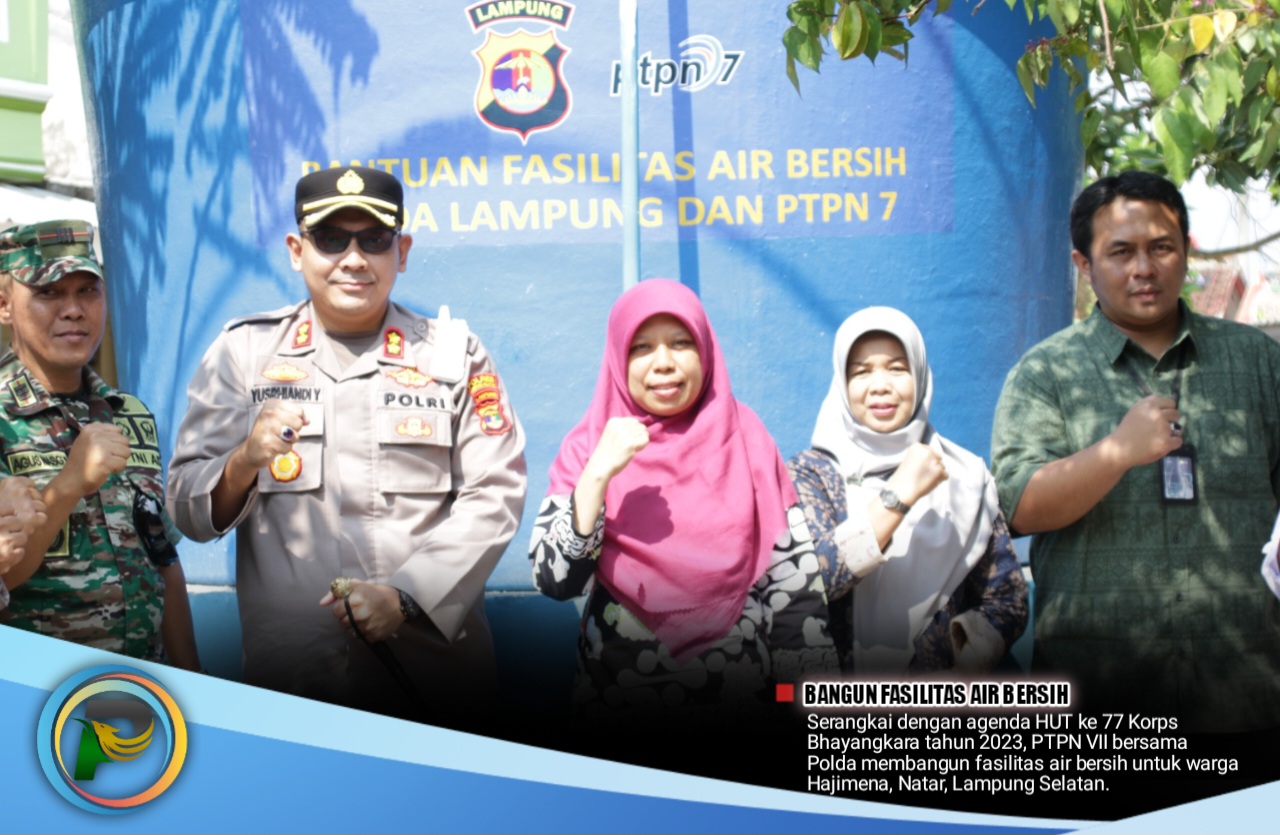 psibali.or.id/ – Serangkai dengan agenda HUT ke 77 Korps Bhayangkara tahun 2023, PTPN VII bersama Polda membangun fasilitas air bersih untuk warga Hajimena, Natar, Lampung Selatan.